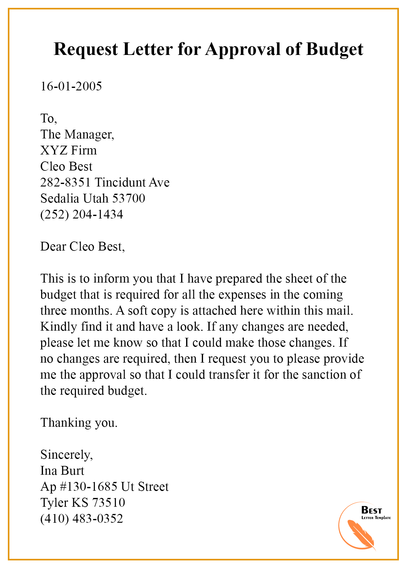 Budget Letter Sample