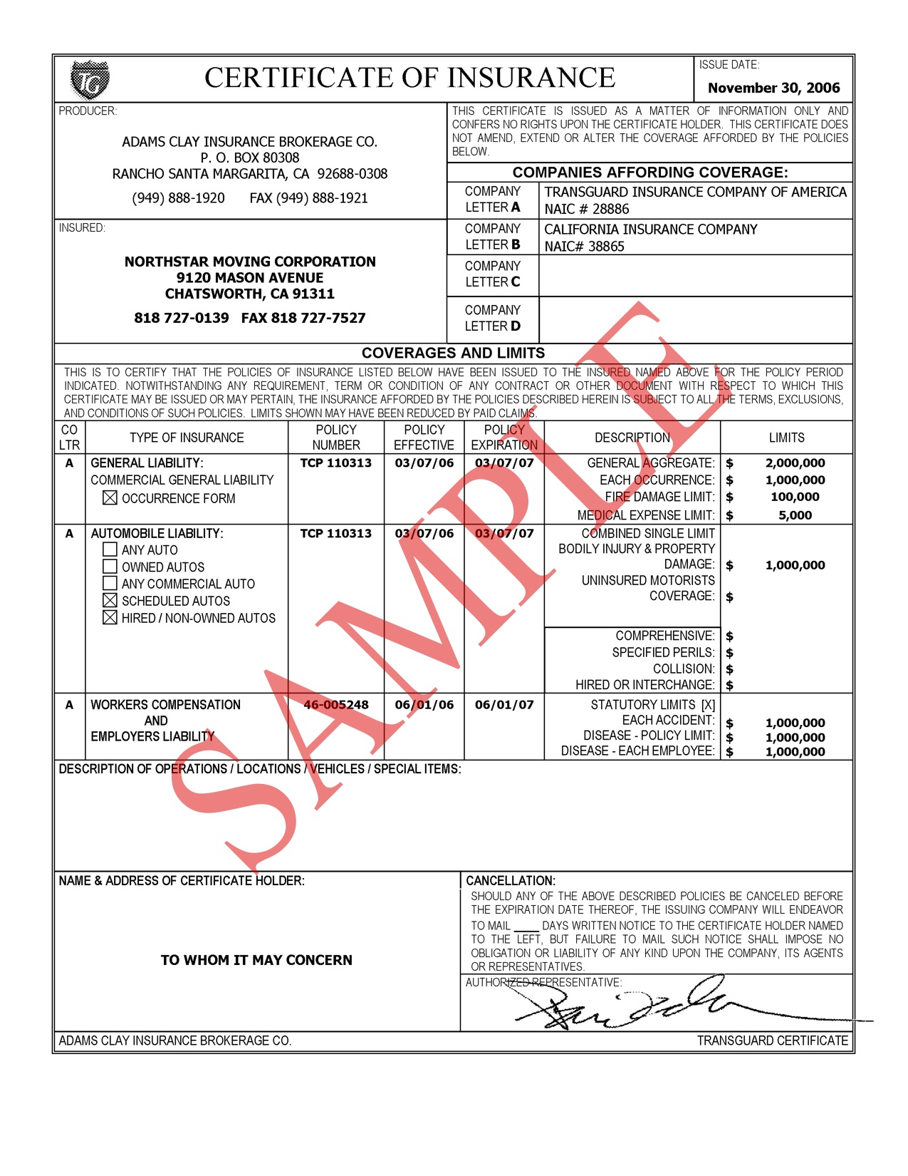 Download Free Sample Certificate of Insuranc…