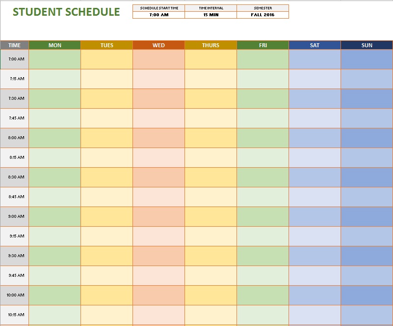 Student weekly schedule template | Templates at allbusinesstemplates.com